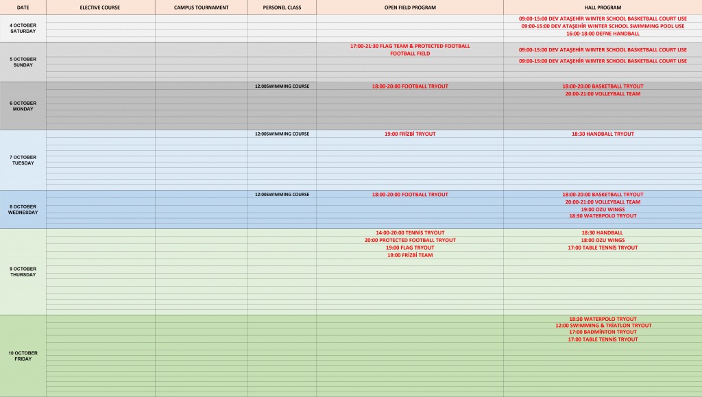 We present to you the Sports Center Weekly Event Bulletin for the week of October 4-10.